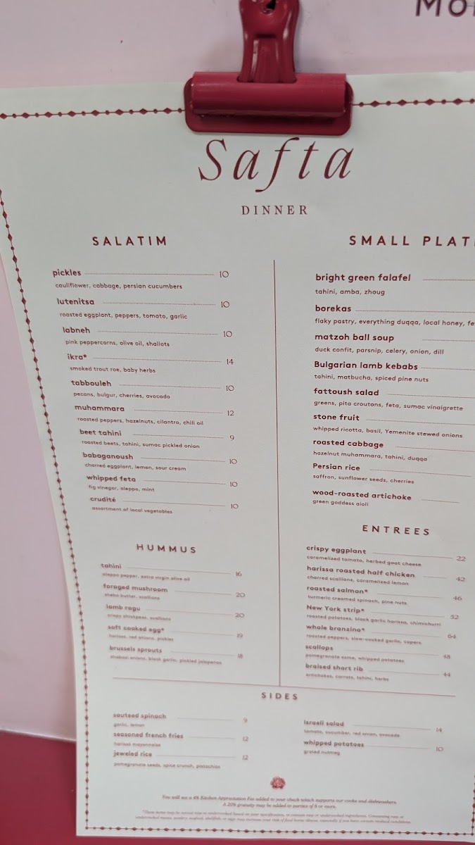 Safta's menu is a delightful exploration of textures and flavors, with signature dishes that have garnered rave reviews. The hummus, served with tahini, Aleppo pepper, and a drizzle of succulent extra virgin olive oil, is a must-try. At $17, it sets the perfect stage for your dining experience, especially when paired with the irresistibly fresh pita that customers rave about.