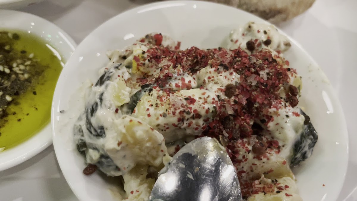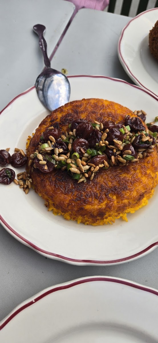 Don't miss out on their dessert offerings, especially the knafeh, featuring cheese-filled crispy dough drenched in saffron syrup—a treat that satisfies both sweet and savory cravings at just $14. The pistachio walnut baklava is another star, served with orange blossom cherries and a dollop of pistachio labneh, priced at $10. Each dessert is a celebration, a perfect, sweet ending to an unforgettable meal.